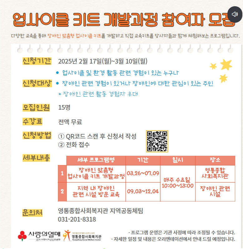 ■ 그 린 투 게 더 : 장애인 맞춤형 업사이클 키트 개발 ○ 일 자 : 3. 26 ~7. 9 ○ 장 소 : 수원 영통종합복지관 교육장